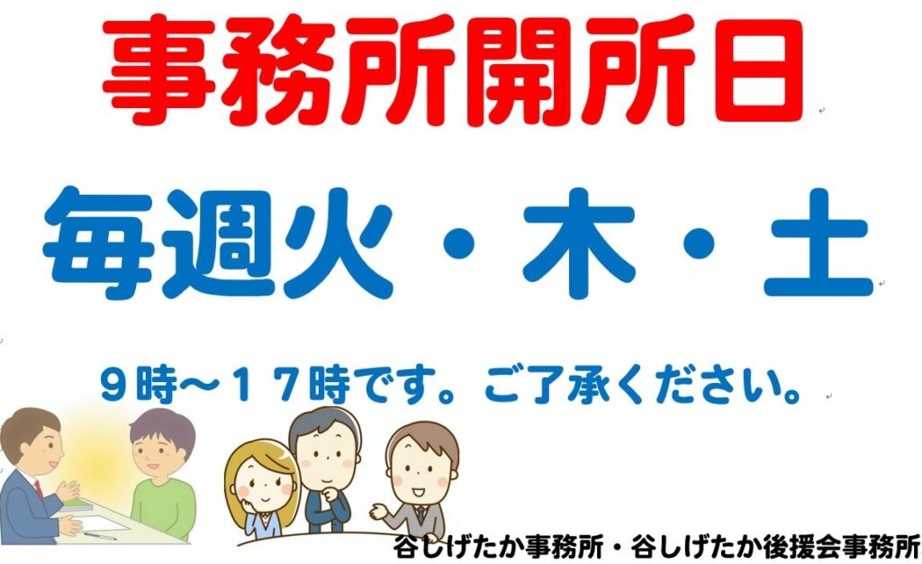 2月より事務所、開所曜日が変更になります。よろしくお願いいたします。